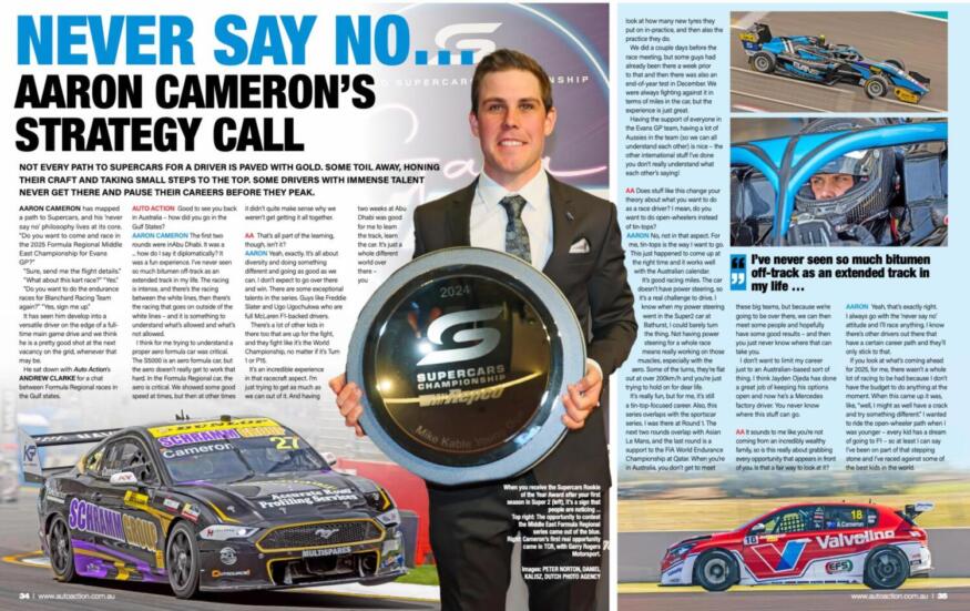 Aaron Cameron has mapped a path to Supercars, and his never say ‘no’ philosophy lives at its core. “Do you want to come and race in the 2025 Formula Regional Middle East Championship for Evans GP?” “Sure, send me the flight details.”