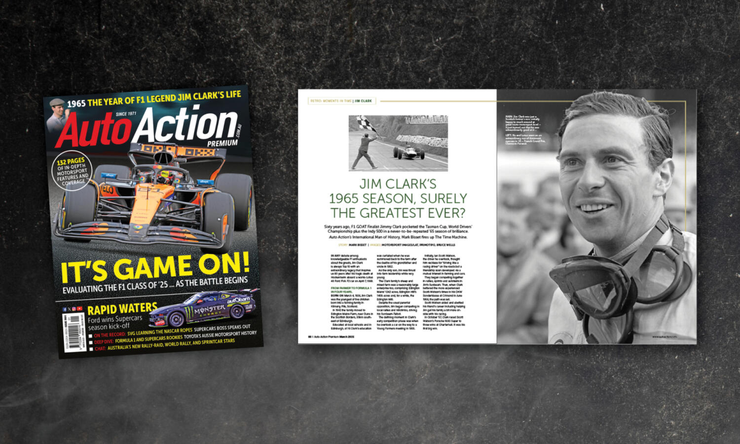 An expansive 12-page feature written by Auto Action’s international man of history, Mark Bisset on Jim Clark’s 1965 racing season. Clark’s ’65 performance across many different categories, including Formula 1, the Indianapolis 500, Formula 2 and saloon car racing, is regarded as perhaps the best individual season in history from a driver that many rate as the best.