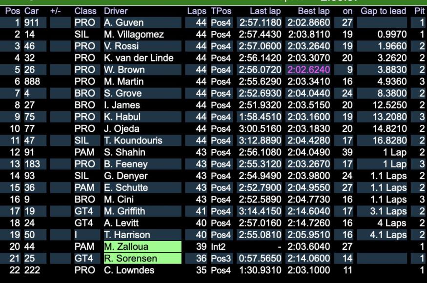under the Safety Car plus new Pro Am leader Schuring.