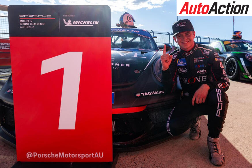 Oscar Targett celebrates his Porsche Sprint Challenge title. Image: Supplied