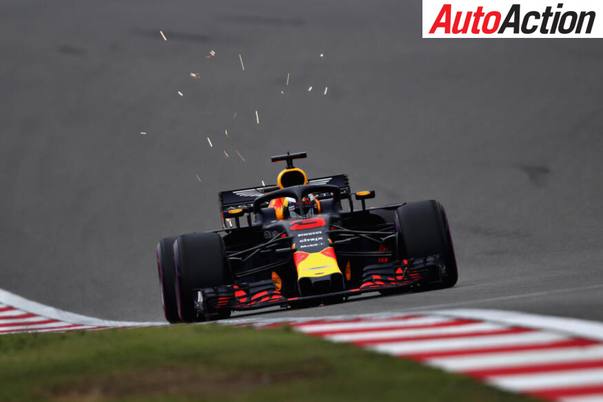 Daniel Ricciardo charging to the final corner in Shanghai. Photo by Clive Mason/Getty Images/Red Bull Content Pool