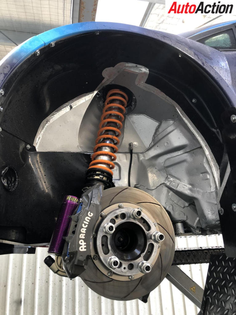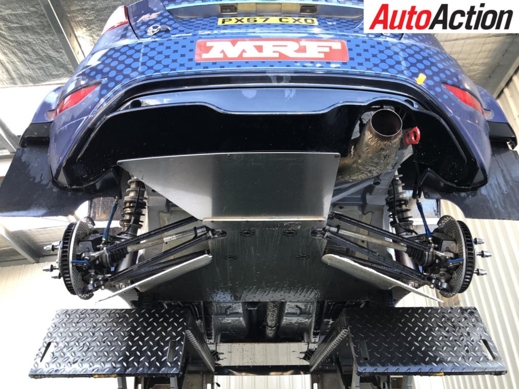 Underneath the car, there are two large sump guards, which Nunn estimates to be 8mm thick with the front weighing 30-40kg and the rear 20kg, which keeps the weight nice and low to the ground, good for centre of gravity.